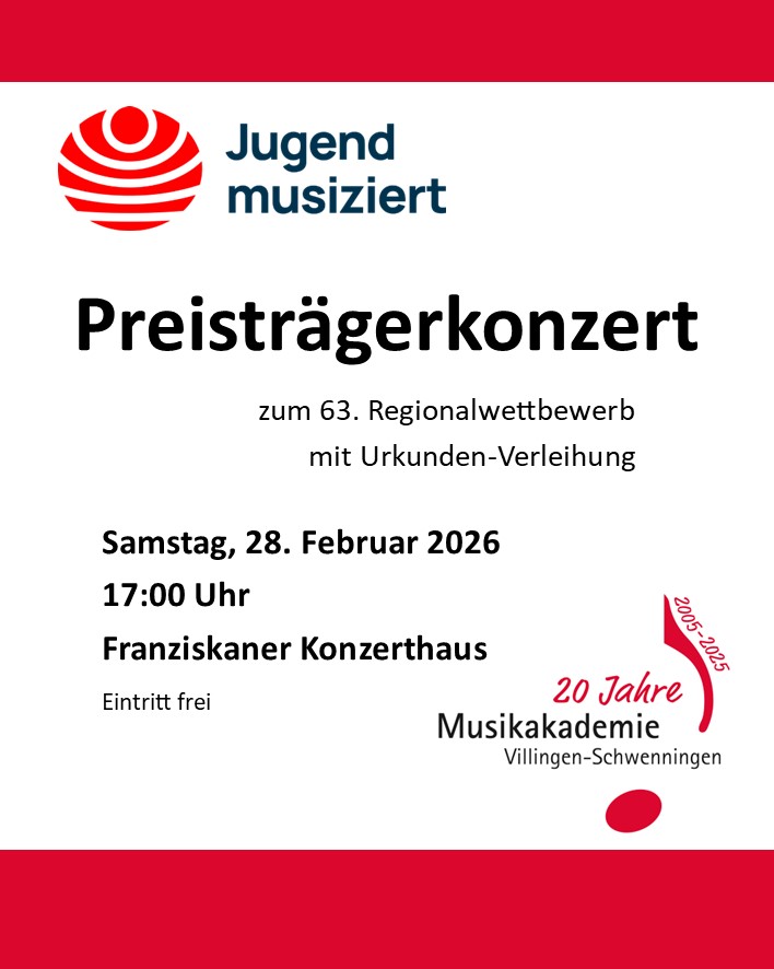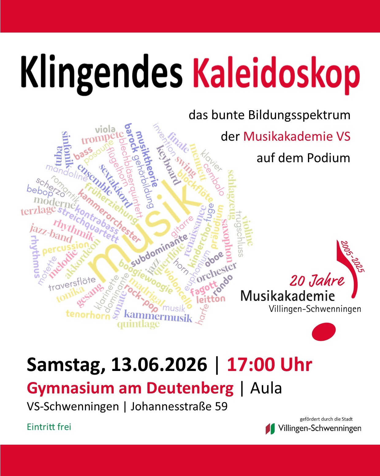 Musik hat viele Gesichter und Facetten, die wir Ihnen auf den neuen Internet-Seiten der Musikakademie Villingen-Schwennigen näherbringen möchten. Machen Sie sich ein Bild von der Vielfalt unseres qualifizierten Musik- und Unterrichtsangebots, welches aus dem Kulturleben der Stadt Villingen-Schwenningen nicht mehr wegzudenken ist.